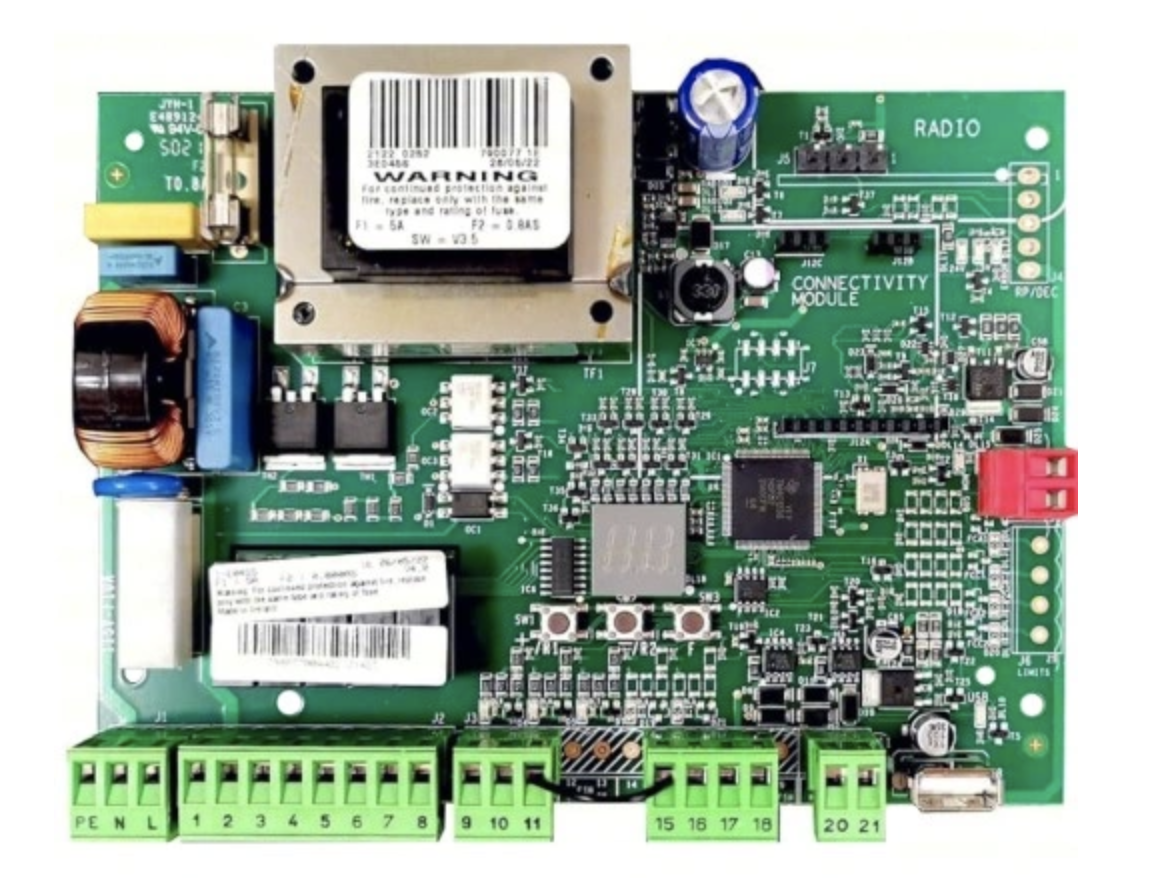 - Wyjścia: Lampa ostrzegawcza/silnik/zasilanie akcesoriów 24VDC/ Sygnalizacja stanu bramy 24VDC/zasilanie zamka elektromagnetycznego 12VAC